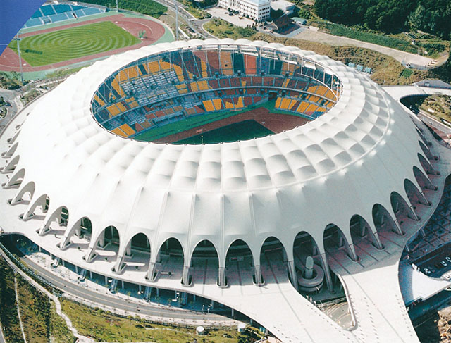 索膜结构是用高强度柔性薄膜材料经受其它材料的拉压作用而形成的稳定曲面,能承受一定外荷载的空间结构形式。其造型自由、轻巧、柔美,充满力量感,阻燃、制作简易、安装快捷、节能、易于施工、使用安全等优点,因而使它在世界各地受到广泛应用